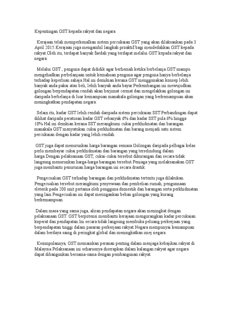 Pengajian Am Kepentingan Gst Pdf